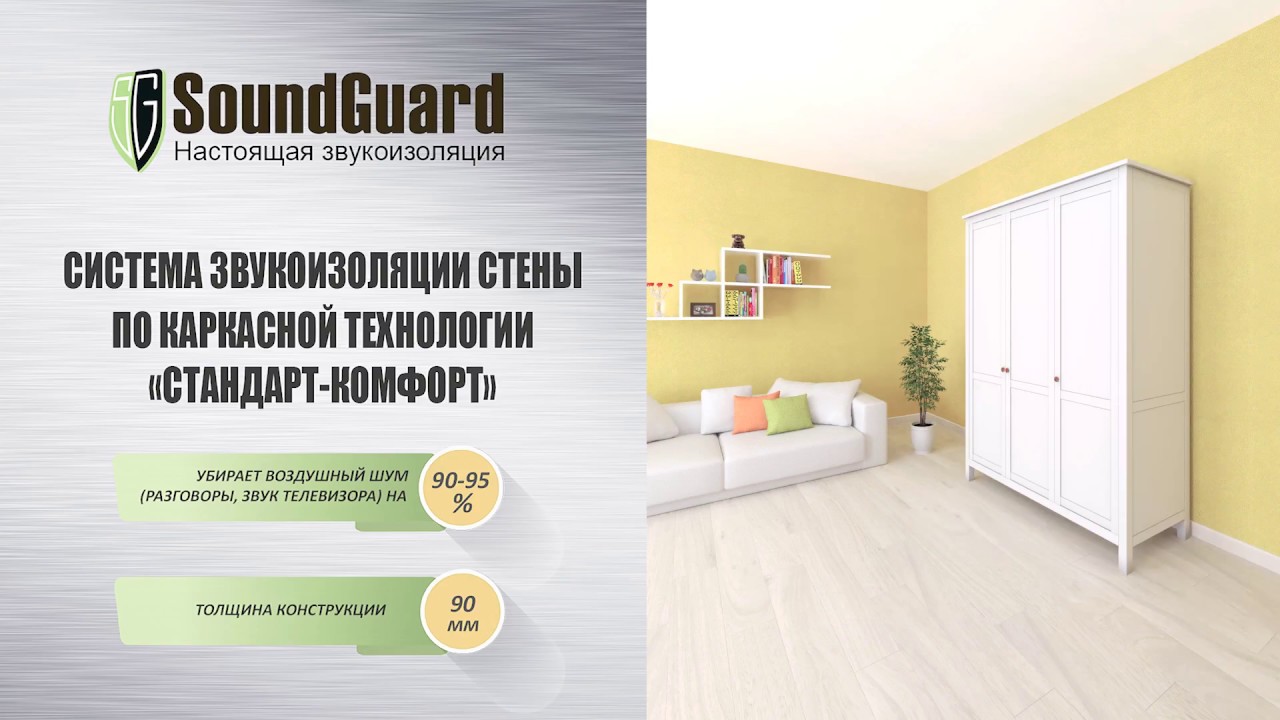 Подробное видео установки звукоизоляции стены по каркасной технологии Стандарт-Комфорт